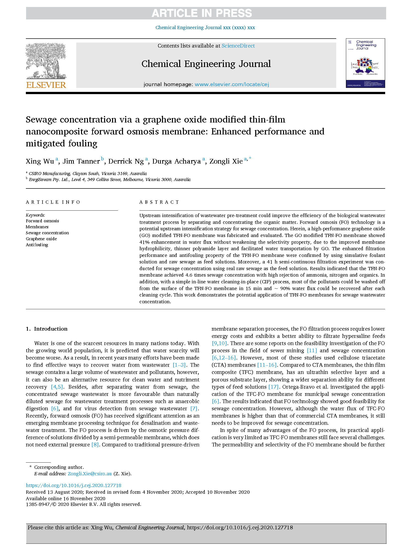 • The forward osmosis membrane has been developed in collaboration with Australia’s leading scientific and industrial research organization – CSIRO