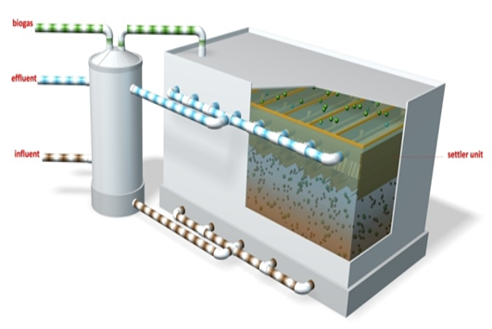 • The concentrated wastewater is fed into a digester to produce biogas which in turn is used to produce electricity and heat.